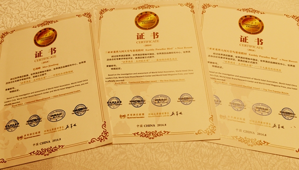 據(jù)了解,經(jīng)過(guò)世界酒店聯(lián)盟、世界酒店領(lǐng)袖中國(guó)會(huì)、世界酒店品牌研究中心、世界雜志社專(zhuān)家評(píng)審組評(píng)定,鳥(niǎo)巢度假村被評(píng)為“世界酒店·五洲鉆石獎(jiǎng)”— 最佳精品特色酒店和十大最受歡迎酒店稱(chēng)號(hào),度假村董事長(zhǎng)毛劍峰先生被評(píng)為中國(guó)創(chuàng)業(yè)功勛領(lǐng)袖。