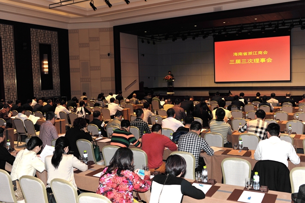 2015年1月24日下午,商會在海口魯能希爾頓酒店召開三屆三次理事會。會議由吳志明秘書長主持。理事會應到人數(shù)135人,實到 95人,參會人數(shù)符合商會《章程》要求。