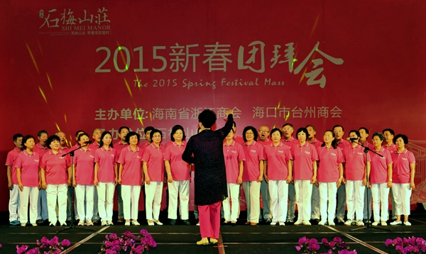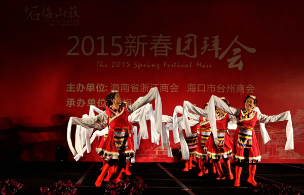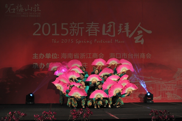 在團(tuán)拜會上,石梅山莊的文藝隊表演了豐富多彩的節(jié)目,有舞蹈、獨唱、合唱、模特表演、詩朗誦等,演員們都是石梅山莊的莊主,充分展示了企業(yè)文化和莊主的精神風(fēng)貌。