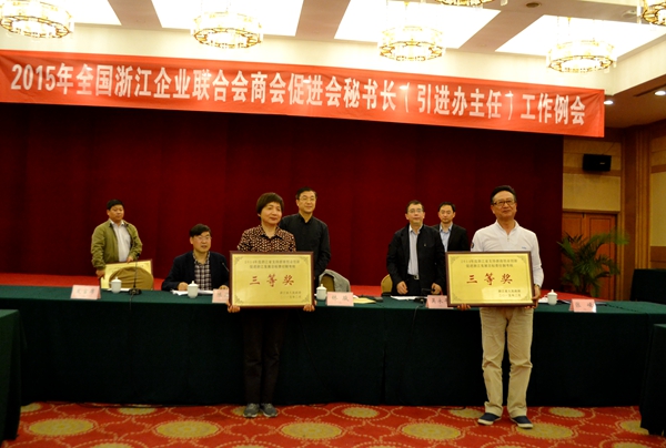2015年全國浙江企業(yè)聯(lián)合會商會促進會秘書長(引進辦主任)工作例會4月1日在杭州召開。浙江省政府經(jīng)濟合作交流辦公室、全國32個省市自治區(qū)浙江商會的秘書長、浙江省政府支持浙商創(chuàng)業(yè)創(chuàng)新服務中心、浙江省創(chuàng)業(yè)創(chuàng)新促進會、《浙商》雜志社等單位的領導出席了會議。會議總結回顧了去年的工作,布置了2015年省外浙江商會引進辦的工作要點,省政府對優(yōu)秀單位進行了表彰。我商會獲省外浙江商會引進辦三等獎。
