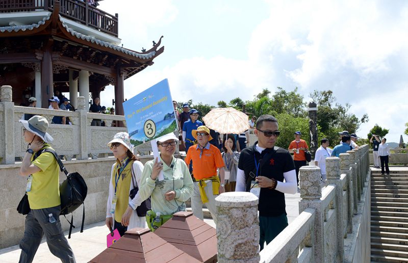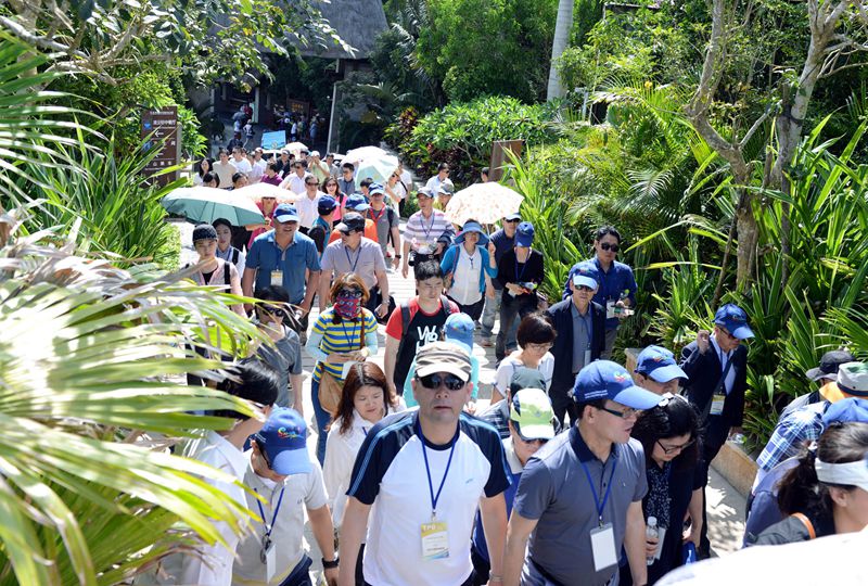 5月30日,正在三亞海棠灣參加第七屆亞太城市旅游振興機(jī)構(gòu)(簡(jiǎn)稱TPO)總會(huì)的150多位嘉賓,蒞臨亞龍灣熱帶天堂森林公園考察參觀。