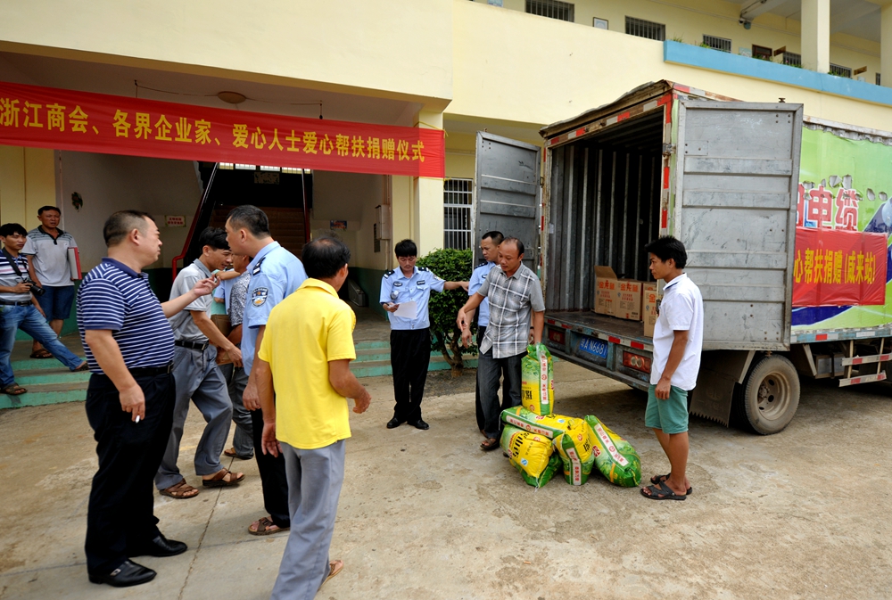 上午,海南省浙江商會(huì)及浙商愛(ài)心企業(yè),驅(qū)車(chē)前往海口市美蘭區(qū)大致坡鎮(zhèn),為咸來(lái)村貧困村民和即將掛牌的咸來(lái)紅軍小學(xué)進(jìn)行了捐助活動(dòng)。