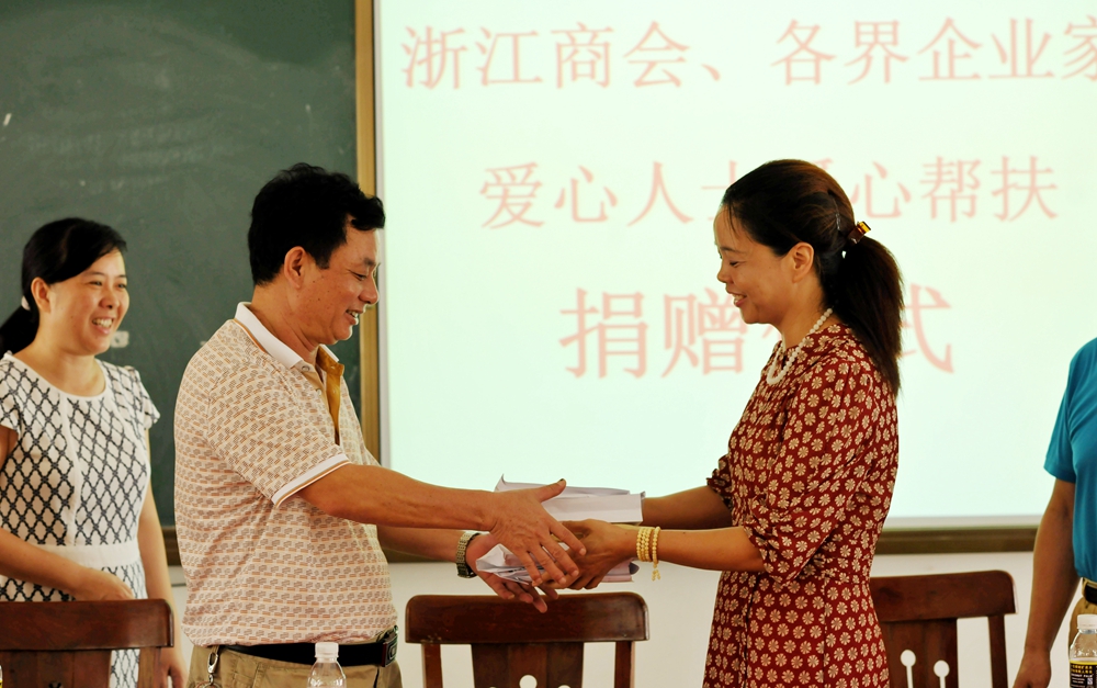 當(dāng)天上午,海南浙江商會(huì)一行12位企業(yè)家驅(qū)車(chē)前往海口市美蘭區(qū)大致坡,在咸來(lái)中心小學(xué),受到了大致坡鎮(zhèn)鎮(zhèn)領(lǐng)導(dǎo)和學(xué)校領(lǐng)導(dǎo)的熱烈歡迎,隨后在咸來(lái)中心小學(xué)的會(huì)議室進(jìn)行了“浙江商會(huì)、各界企業(yè)家愛(ài)心人士愛(ài)心幫扶捐贈(zèng)儀式”活動(dòng)。這次共捐贈(zèng)善款103532元。