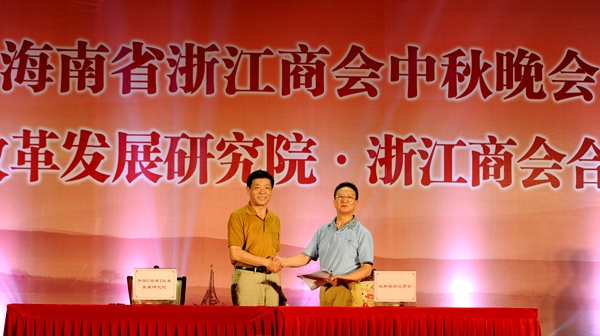 晚會(huì)開始,中國(海南)改革發(fā)展研究院和浙江商會(huì)簽訂了合作協(xié)議。商會(huì)蔡衛(wèi)華會(huì)長和研究院遲福林院長發(fā)表了熱情洋溢的講話。晚會(huì)上還演出了精彩的文藝節(jié)目。