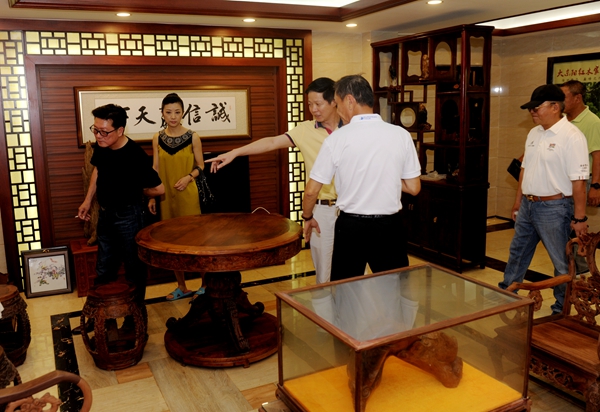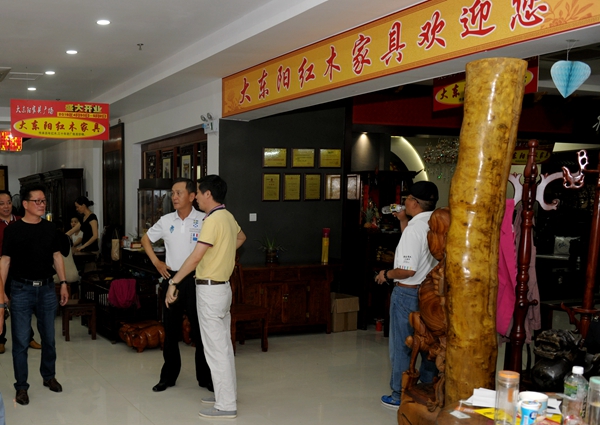 蔡會(huì)長(zhǎng)一行參觀了即將于4月29日開(kāi)業(yè)的大東陽(yáng)家具廣場(chǎng)二期,開(kāi)業(yè)后整個(gè)家具廣場(chǎng)的營(yíng)業(yè)面積將達(dá)到3萬(wàn)平方米。應(yīng)馬龍?zhí)抖麻L(zhǎng)的邀請(qǐng),蔡會(huì)長(zhǎng)一行還到馬龍?zhí)兜乃饺它S花梨收藏館參觀,其黃花梨收藏精品之多,令會(huì)長(zhǎng)們大開(kāi)眼界。