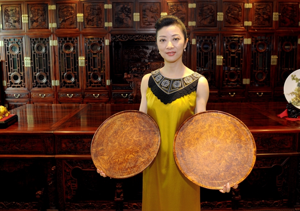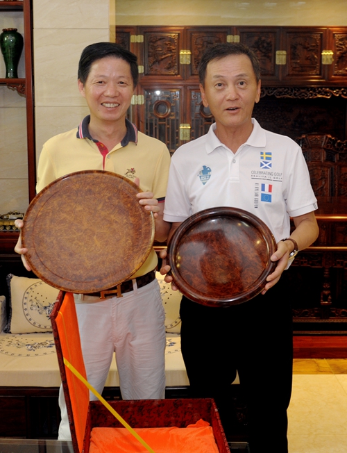 在大東陽(yáng)家具廣場(chǎng),蔡會(huì)長(zhǎng)一行聽(tīng)取了董事長(zhǎng)馬龍?zhí)兜慕榻B,他說(shuō),大東陽(yáng)20多年來(lái)一直專注于生產(chǎn)海南黃花梨、越南黃花梨、小葉紫檀、大葉紫檀、大紅酸枝等高檔紅木家具以及中低檔紅木家具,在紅木家具的設(shè)計(jì)上著重于傳承明清家具之精髓,致力于傳承和發(fā)揚(yáng)中華傳統(tǒng)文化。大東陽(yáng)從事紅木家具設(shè)計(jì)制作三十多年,有著精湛的雕刻技藝和豐富的設(shè)計(jì)經(jīng)驗(yàn),在業(yè)內(nèi)享有較高的聲譽(yù)。大東陽(yáng)對(duì)紅木家具的創(chuàng)新都是在傳承的基礎(chǔ)上進(jìn)行的,有扎實(shí)的基本功做基礎(chǔ),設(shè)計(jì)的產(chǎn)品從“材、型、藝、韻”等方面都嚴(yán)格把握,既融古典精髓,又展現(xiàn)代元素。正是因?yàn)橛羞@些努力和堅(jiān)持,大東陽(yáng)不斷的成長(zhǎng)發(fā)展,獲得無(wú)數(shù)榮譽(yù)。2011年,大東陽(yáng)旗下品牌鴻庭軒作品“萬(wàn)福花鳥(niǎo)多寶閣”在2011中山(隆都)紅木家具文化節(jié)上榮獲特別金獎(jiǎng),作品“帶托泥方臺(tái)座”榮獲精品獎(jiǎng);2011年度沙溪(隆都)紅木家具十大知名企業(yè);2011年、2012年連續(xù)兩年鴻庭軒榮獲“最具創(chuàng)新力的中國(guó)紅木家具十大品牌”榮譽(yù)稱號(hào)。