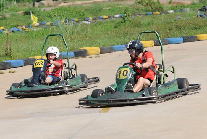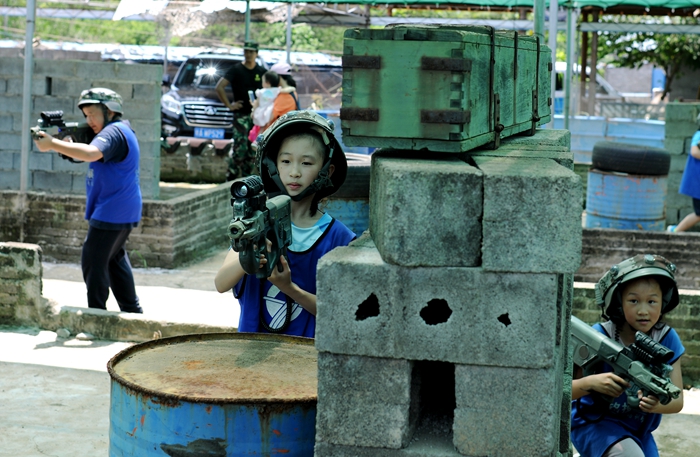 海南浙商“六一”兒童節(jié)全家總動(dòng)員家庭互動(dòng)聯(lián)誼會(huì)今天在銘投拓展主題山莊舉行,有200多人參加了活動(dòng)。今天是兒童們的節(jié)日,他們?cè)谏角f參加了親子歡樂游戲和親子大比拼活動(dòng),真人CS鐳戰(zhàn)是孩子們的最愛,他們戴上頭盔拿著新式武器進(jìn)行激戰(zhàn)。山莊的極速卡丁車更吸引孩子們,他們都是勇敢者,紛紛駕車飛駛。一些家庭的孩子們參加了皮劃艇、射箭、釣魚等活動(dòng)。這次活動(dòng)是由浙江商會(huì)和銘投實(shí)業(yè)贊助的。