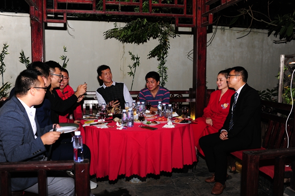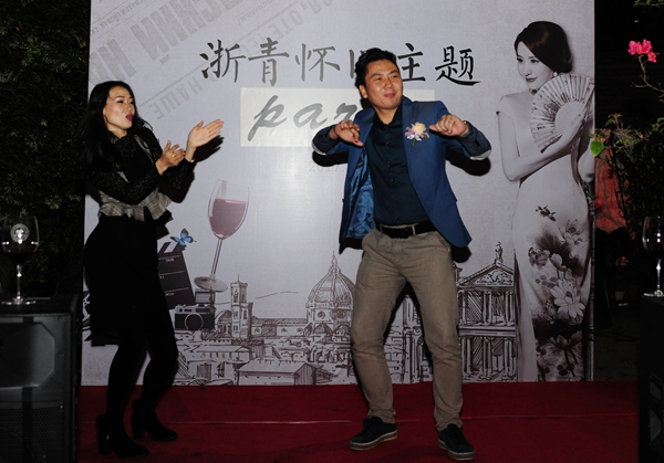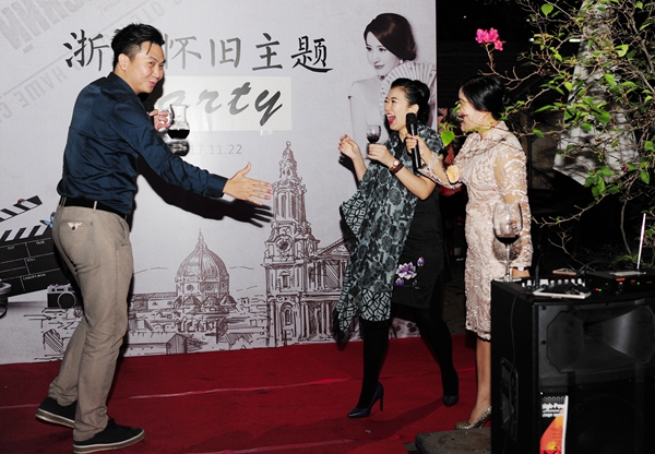 派對在浙青會副會長孫衛(wèi)剛私人會所舉行。有80多人參加了派對活動,女的穿旗袍,男的穿西裝,在布置一新的場外露天喝酒聊天,互相交流,增加友誼。