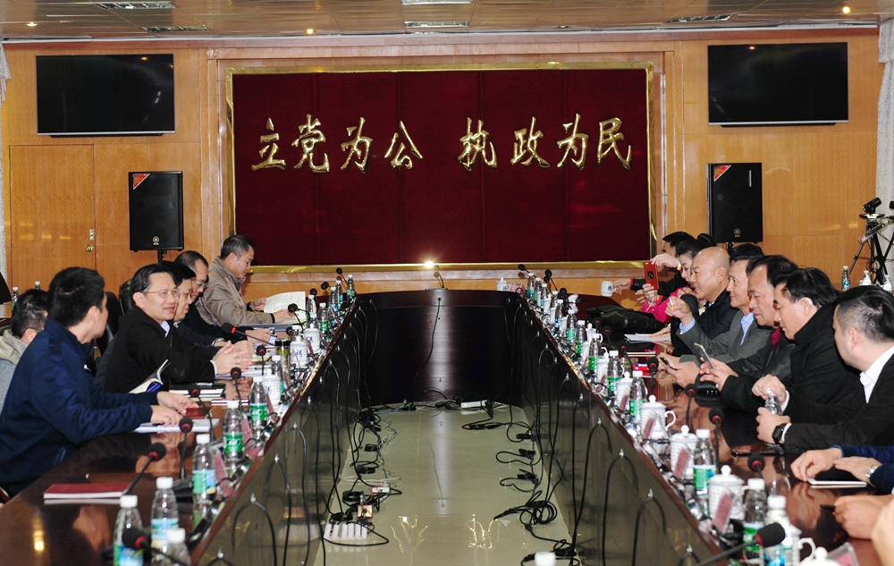考察結(jié)束,在臨高縣委的辦公樓舉行了座談,縣委書記李江華介紹了臨高的縣情和未來發(fā)展的前景。