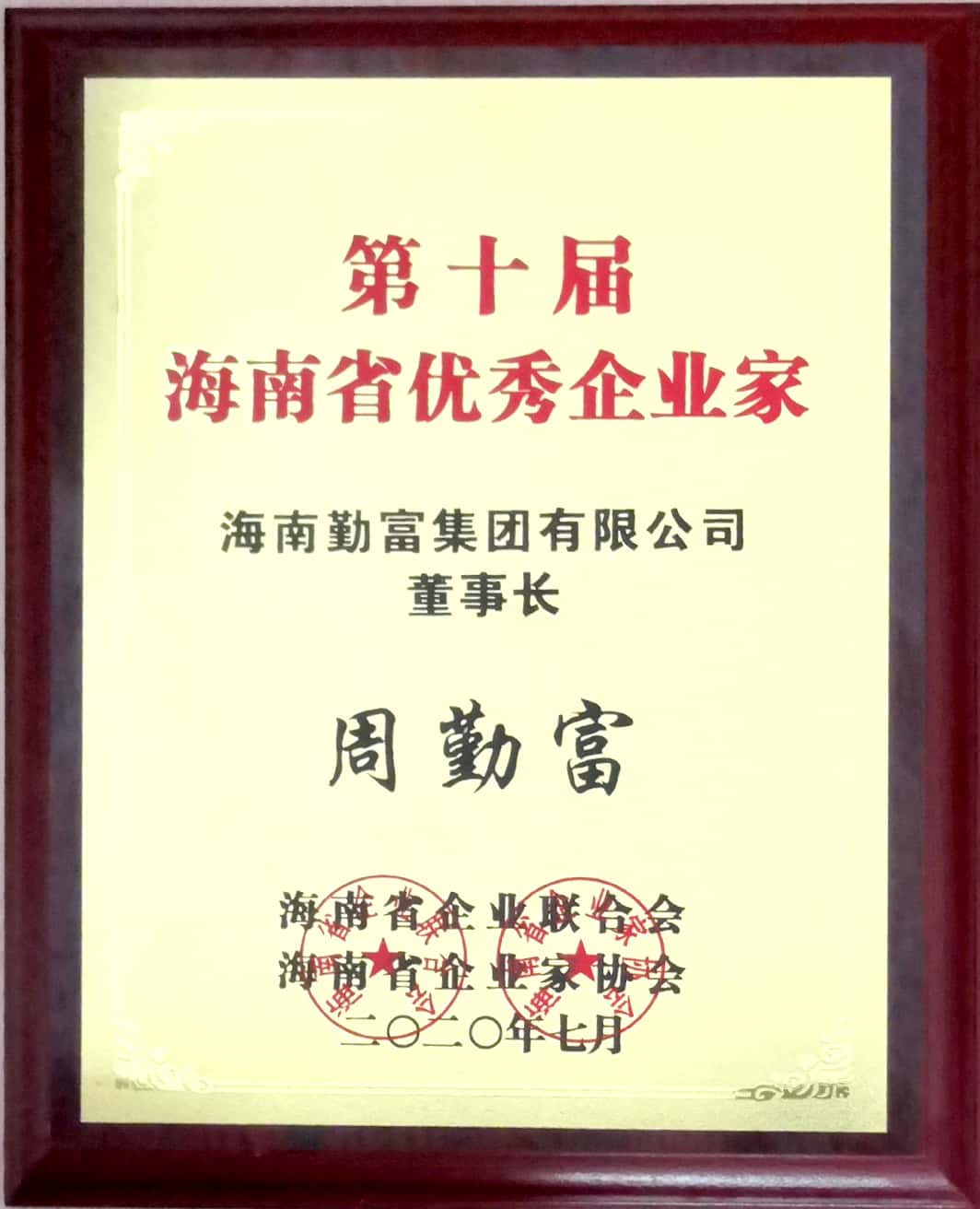 在海南創(chuàng)業(yè)35年,周勤富憑借勤勞必能致富的理念,堅(jiān)持科技引領(lǐng),誠(chéng)信為本,充分依靠黨的改革開(kāi)放好政策,艱苦創(chuàng)業(yè),在各級(jí)政府和同行的熱心幫助下,他從一位白手起家的農(nóng)民發(fā)展到擁有國(guó)家級(jí)農(nóng)業(yè)產(chǎn)業(yè)化重點(diǎn)龍頭企業(yè),打造了從水產(chǎn)養(yǎng)殖、飼料供應(yīng)到水產(chǎn)加工、出口貿(mào)易為一體的全產(chǎn)業(yè)鏈經(jīng)營(yíng)的現(xiàn)代化企業(yè),促進(jìn)了一二三產(chǎn)業(yè)的融合發(fā)展。他衷心感謝黨和政府的大力支持和幫助。“勤富”既是他的名字,又是企業(yè)的名稱(chēng)。“勤澤天下,富而有道”,這是他對(duì)“勤富”兩個(gè)字的深刻理解,他一直把這作為我們公司的經(jīng)營(yíng)理念。35年來(lái)周勤富將自己的全部精力投入到為企業(yè)謀發(fā)展,為員工謀福利,為農(nóng)民謀致富,始終保持著高漲的創(chuàng)業(yè)激情和進(jìn)取精神,不斷的踐行著一個(gè)淳樸的農(nóng)民子弟對(duì)自己、對(duì)農(nóng)民兄弟、對(duì)社會(huì)的“勤富”承諾。